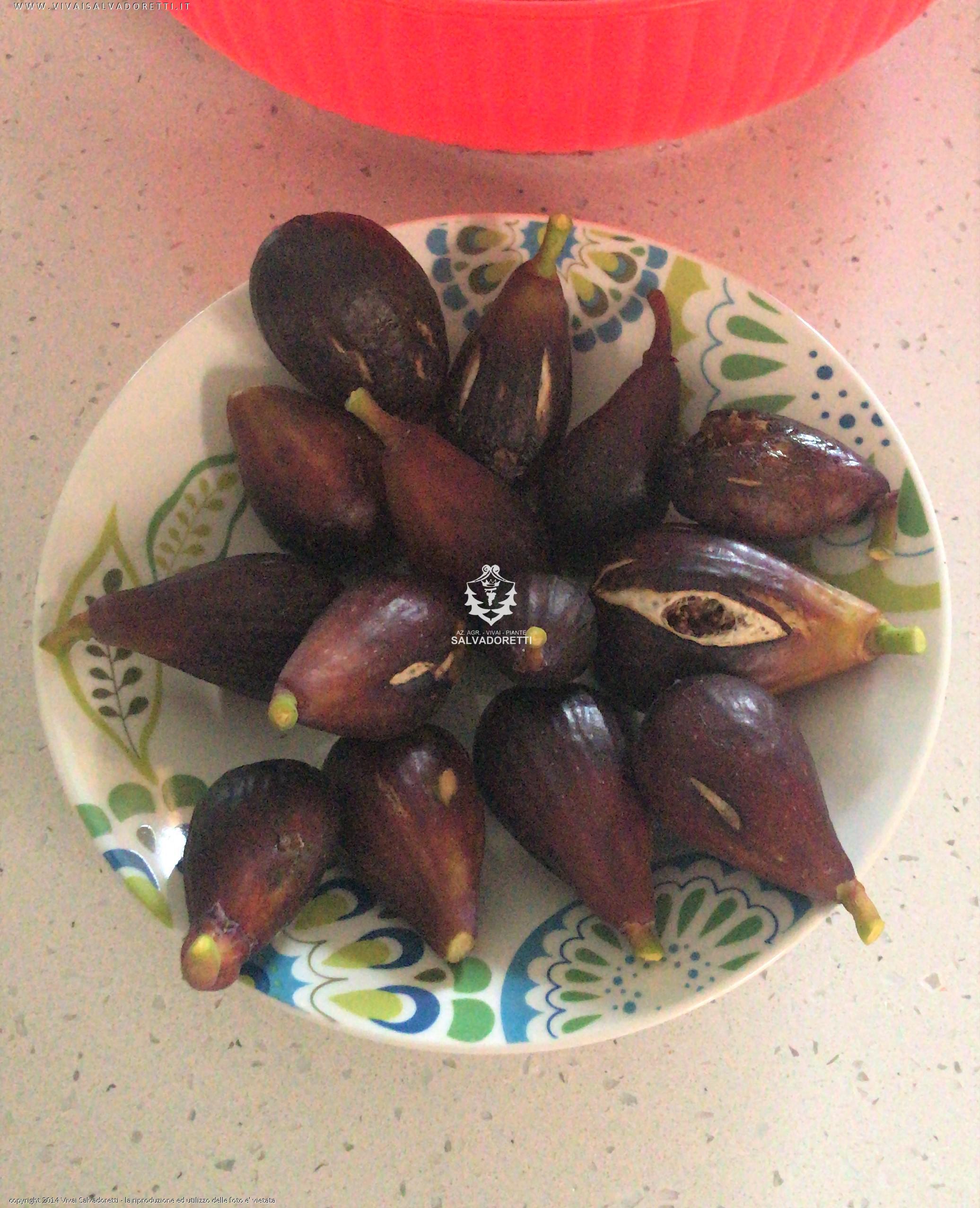 | • Periodo Fioritura: | Frutto antico. Adatto per il consumo fresco ed essicazione. Resistente alle pioggie. Produce due volte l'anno fioroni e successivamente maturazione frutto di 'fico nero' di forma allungata, molto zuccherino. Rustico, molto resistente alle malattie. |